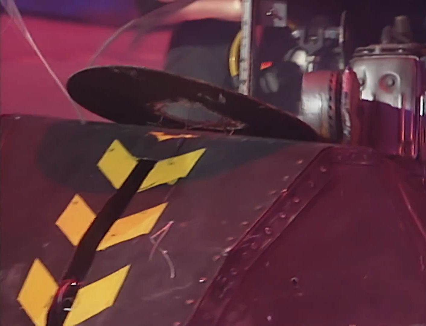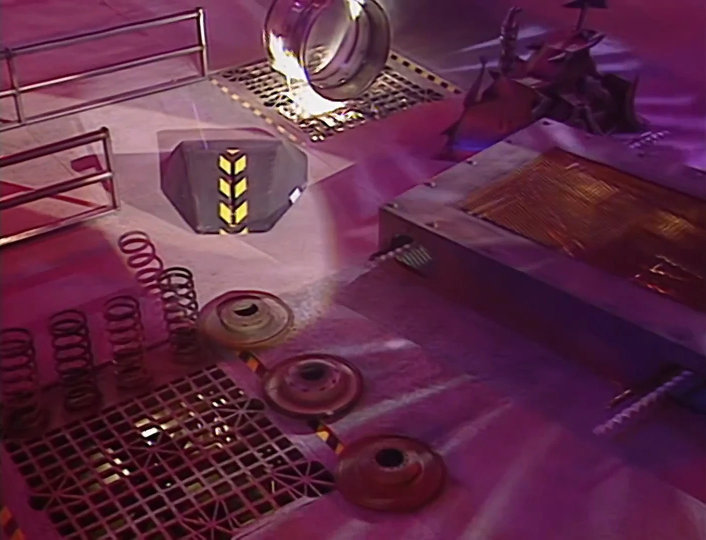 As it left the maze, Shunt came towards it, but he drove into the corkscrew lance box and knocked it askew. This distraction allowed Wedgehog to drive around the springs, and past the grille, but when it drove over the spikes, the spikes rose, blocking it. The spikes lowered and Wedgehog moved forwards, but the spikes raised again, lifting Wedgehog off the ground.