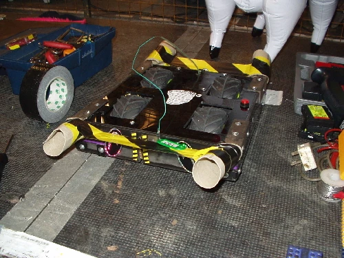 Whirlwind was scheduled to appear in the Featherweight Championship however for reasons unknown the robot did not enter the arena[1]. it was spotted in the pits being worked on by both Team Coyote and Andrew Marchant of Team Tornado.