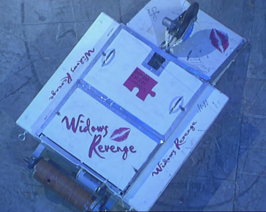 Widow's Revenge was built by The Robot Widows, a team of female roboteers who claimed to be 'tired of having their partners spend so much time working on their robots'. The team represented the Breast Cancer Campaign charity throughout their campaign.